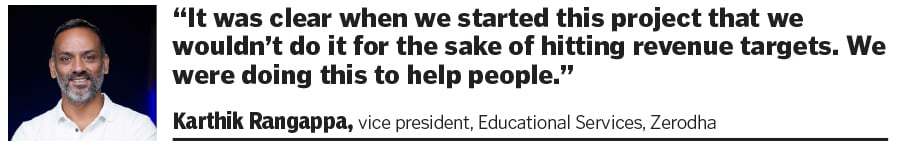 In 2010, Zerodha was founded by Nithin and Nikhil Kamath. Three years later, they decided to start an educational platform, primarily for retail traders. “Nithin and I decided to start an educational initiative in 2013. Until then, all educational content was geared towards the US market," says Karthik Rangappa, vice president, Educational Services at Zerodha. “It was clear when we started this project that we wouldn"t do it for the sake of hitting revenue targets. We were doing this to help people." Varsity"s content is open to everyone, not just Zerodha customers, and does not require users to log in.