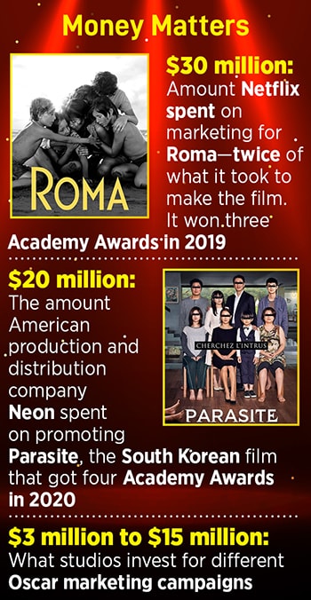 Netflix set a new standard with a whopping $30 million for its Oscar campaign on Roma—double the film’s production cost, according to a January 2024 Forbes article. It added that studios make investments in Oscar marketing campaigns that typically range from $3 million to an astounding $15 million per film.