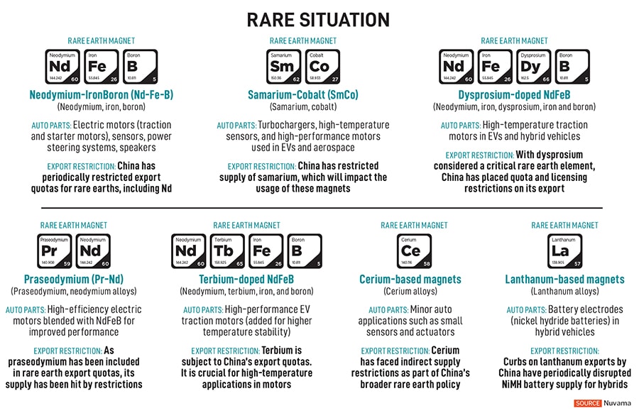 Wadhwa’s reference is to the ongoing shortage of rare earth magnets, which seems to be hurting India’s 20 lakh vehicles-a-year automotive industry—counting all two-wheelers, three-wheelers and passenger vehicles sold in the world’s third-largest market. Although most automakers are tight-lipped about the crisis, reports of unavoidable delays and disruption abound, specifically in the production of electric vehicles (EVs), for which rare earth magnets are critical.