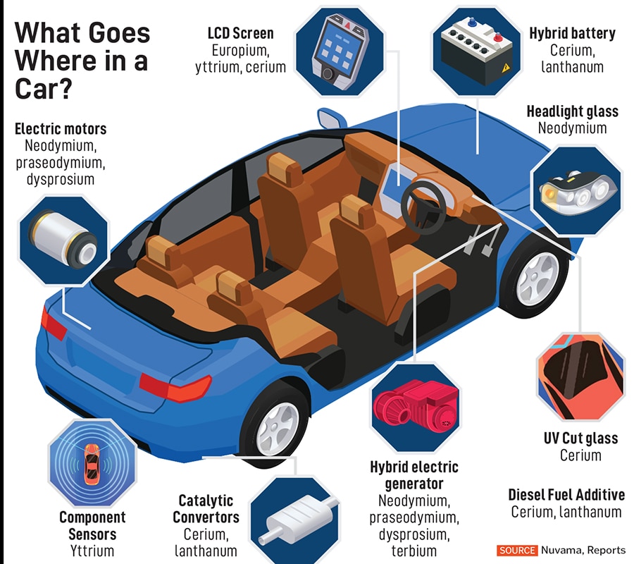 For the auto industry, which contributes 7 percent to India’s gross domestic product, rare earth magnets are crucial. “For traditional ICE (internal combustion engine) vehicles, magnets are used in components such as power steering motors and air conditioning systems," says Harshvardhan Sharma, head of auto retail practice at Nomura Research Institute. “The role is essential, but the overall dependency is less than in EVs. However, in EVs, rare earth magnets play an indispensable role."