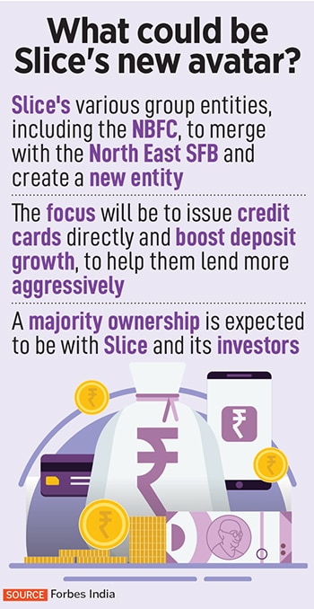 Back-of-the-envelope calculations suggest that Slice and its investor group could get a majority 95 percent stake in the new entity, while NE SFB would get the balance 5 percent stake, analysts say. Slice may need to also raise more capital, to fund the businesses, besides focusing on garnering deposits and issuing credit cards directly.