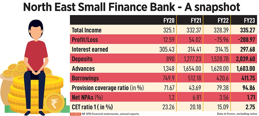 For NE SFB, the pre-merger business outlook appeared more unclear. NE SFB, the only one of its kind in the Northeast region, has seen a significant decline in its tier 1 capital ratio, to just 2.75 percent in March 2023 from 23.26 percent in March 2020 (see table). Despite some capital infusion from a section of its investors in 2022, this has not been enough. An SFB needs to maintain a minimum tier I capital of at least 7.5 percent of risk weighted assets (RWAs), according to the RBI.