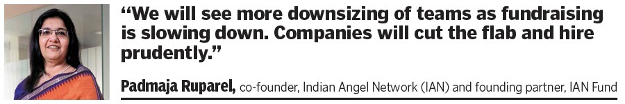 “Yes, we will see more downsizing of teams as fundraising is slowing down. Companies will cut the flab and hire prudently," warns Ruparel.