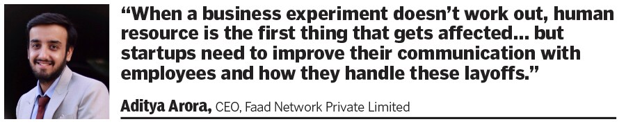 “The nature of these businesses and the cycle in which they’re operating might lead to a certain level of the workforce that will go out of business every time, but startups need to improve their communication with employees and how they handle these layoffs," says Arora.