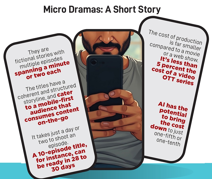 Micro dramas are fictional videos with durations of a minute or two that together comprise episodes with storylines—unlike Shorts and Reels that are usually disparate. Micro dramas are quick to produce and cost a fraction of the amount it takes to make a movie or a web show. These short-duration videos can reach the farthest corners because of the high mobile and internet penetration in the country. As a result, a bevy of startups has entered the fray, bolstered by venture capital (VC) firms, which see these content platforms as lucrative investment options.
