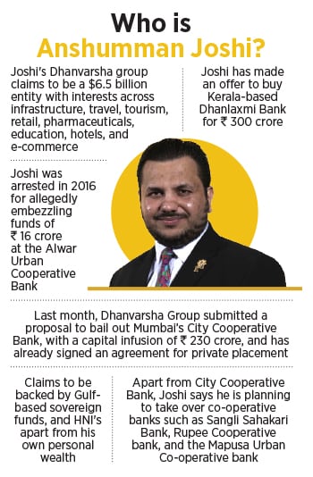 Quite simply, Joshi wants to take over Dhanlaxmi bank to help him buy out a few co-operative banks that he has laid his eyes on.