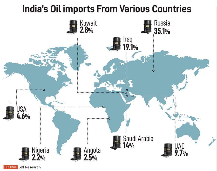 In 2021, India was buying 3 percent of its annual oil imports from Russia. Over the last five years, it lowered its purchases from the Middle East and the US.
