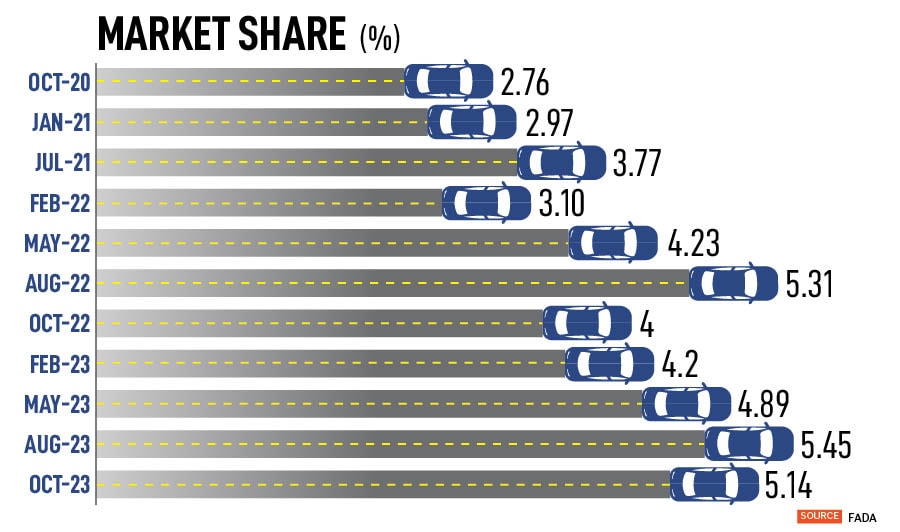 This year, sales between January and November stood at 210,497 units, up 40 percent over the same period in 2022, at 149,995 units. In September, the automaker posted its highest-ever sales at almost 23,000 units, and is now close on the heels of Kia Motors in the pecking order. Toyota has a market share of 5.14 percent compared to Kia’s 5.95 percent as of October.