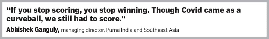 Meanwhile, in March 2020, Puma found itself in a weird situation. January was the best the company had seen in India. Two months later, the country went under the first spell of lockdown. The challenge was grave. With negative and uncertain business environment, a pessimistic outlook on the job front, and hyper subdued consumer sentiment, companies and brands went inside their shell. Everyone started cutting cost, halting expenditure and suspending operations. “For the first time in our history in India, sales dropped," says Ganguly. The company closed 2020 at Rs 1,215 crore, as against Rs 1,413-crore revenue that it clocked in 2019. Human instinct would have meant exercising more caution, Puma resorted to animal instinct.