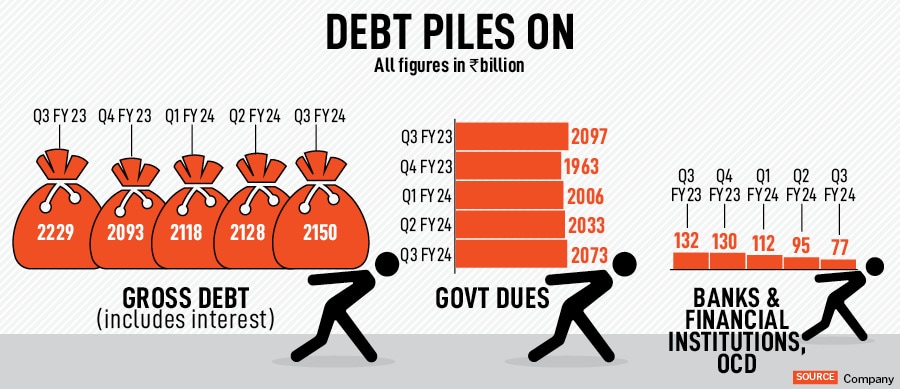 Debt of the telecom operator is rising at an alarming rate. It owes Rs 2.1 trillion to the government, with a large part of it under moratorium until first half of FY26. VI would have repayments of Rs 29,100 crore in the second half of FY26. It has to pay Rs 43,000 crore annually over FY2027-31. “The fundraise and potential tariff hike should improve VI’s financials. However, we don’t see a credible case where VI’s cash Ebidta would increase sufficiently to meet large annual dues to the government" Bansal and Sharma say. While there could be an extension of the moratorium, a partial waiver (relief on AGR dues) and further relief from the government, writing off government dues in entirety for a specific company will be difficult.