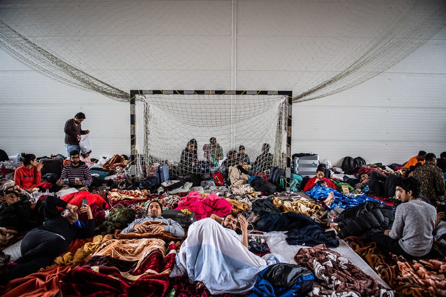 Hundreds of Indian students from the Kiev Medical School are housed in a reception center in Milisauti, Romania, on March 3, 2022, while waiting for an airlift to take them back to India. Photo by Alessandro Serrano/AGF/Universal Images Group via Getty Images