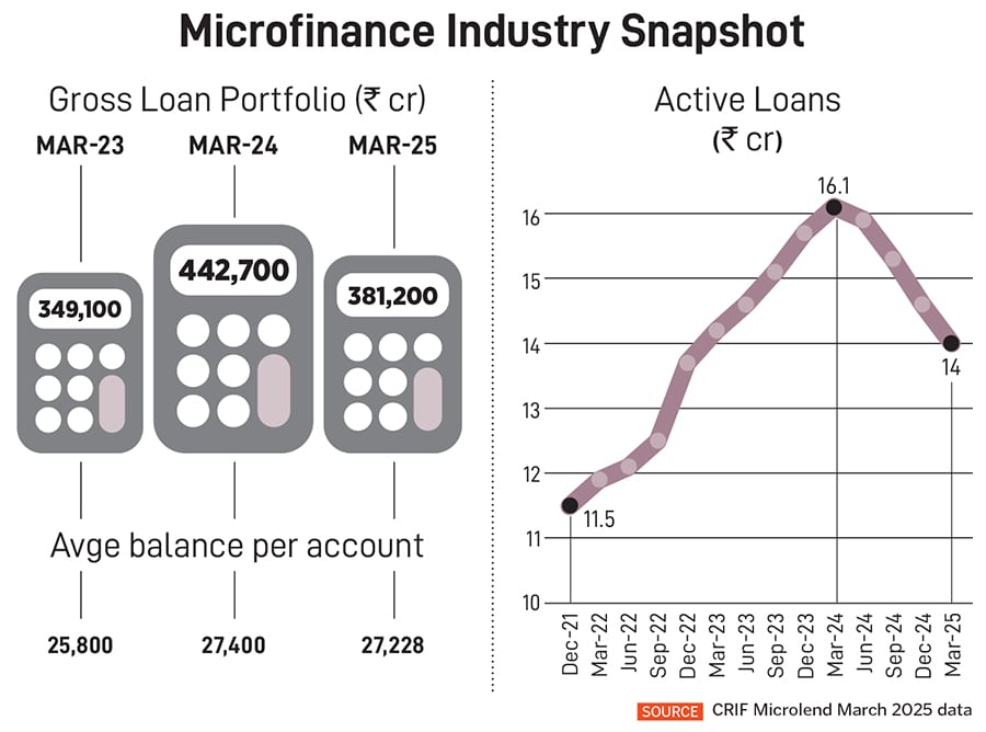 The CRIF 2025 report shows that Tamil Nadu (7.7 percent decline quarter-on-quarter) followed by Karnataka (7 percent) recorded the steepest gross loan portfolio decline, “likely influenced by regulatory changes, upcoming ordinances and lending policy constraints". Tamil Nadu introduced a bill in 2025—like the Karnataka ordinance—to target predatory recovery methods from unregistered microfinance lenders. But lack of clarity in the language and implementation have affected the collection efficiency of registered lenders too. “The effects of the legislations are still to be felt," Nautiyal says.