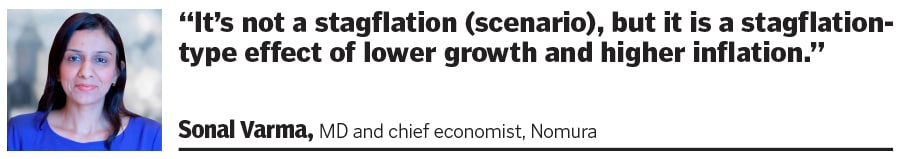 “Durable recovery is a challenge. There are policy trade-offs here, so the (geopolitical) shock is going to mean higher inflation and lower growth," says Varma. “It is not a stagflation (scenario), but it is a stagflation type effect of the current global macro backdrop and it does mean lower growth and higher inflation," Varma adds.