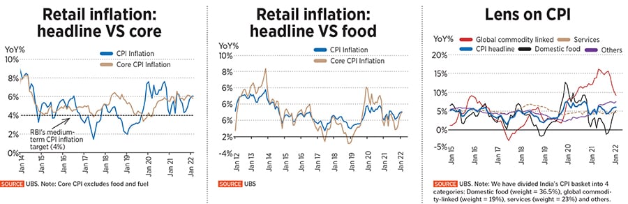 The Reserve Bank of India (RBI) had estimated inflation to peak at 5.7 percent in the fourth quarter of the current fiscal year. It may need to revisit its inflation and growth forecasts in light of the recent geopolitical developments (see chart).