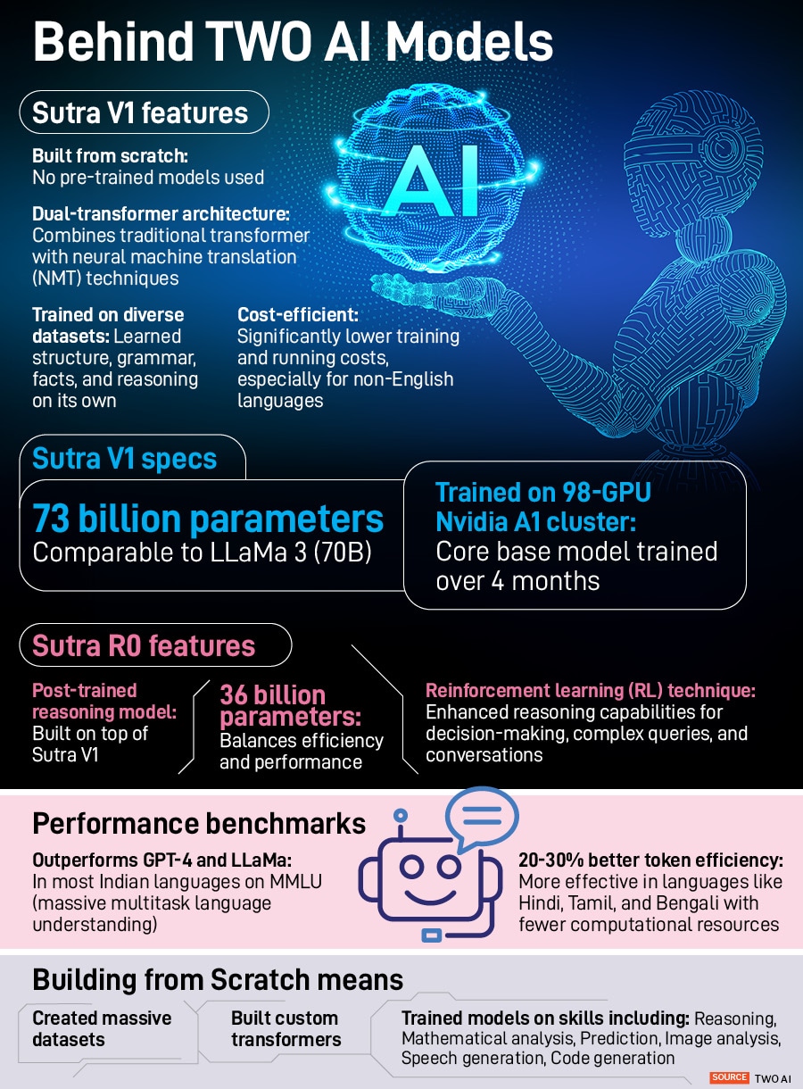 TWO AI recently introduced Sutra-R0, a reasoning model for structured thinking and complex decision-making in various languages and domains. The model addresses enterprise and consumer needs with its efficient resource usage and multilingual capabilities. Backed by a $20-million seed fund from Jio Platforms (a subsidiary of Reliance Industries, publishers of Forbes India) and South Korean internet conglomerate Naver, TWO AI’s ChatSutra has 1.5 million users in multiple languages, including Gujarati, Chinese, Thai, Vietnamese, and Indonesian.