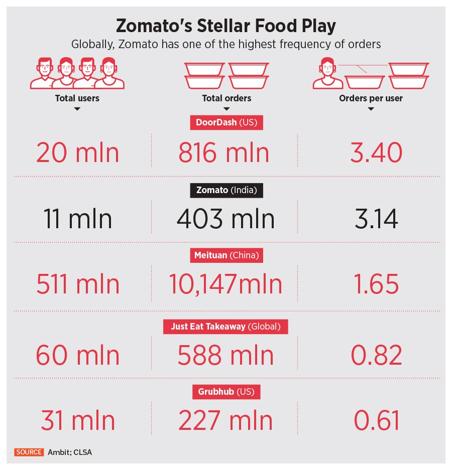 Second, food delivery alone won’t make Zomato a force to reckon with, especially after the listing. It would need more engines, if not one which can be as big and promising as food delivery, to fire. Reason: Low transacting consumers. Though Zomato, Ambit Capital Research points out in its brokerage report in May this year, has a high monthly active user (MAU) base of 42 million, the number for monthly transacting user (MTU) is just 11 million. What this means is that the online food delivery major has to provide more reasons and occasions for consumers to pay. Food alone won’t suffice.