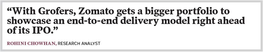 Zomato, for its part, is well aware of the problem, and the potential solution. One of the threats in the excruciatingly long list of risk factors mentioned in its draft red herring prospectus (DRHP) filed in April includes, “If we are unable to make acquisitions of and invest in complementary businesses, assets and technologies, or successfully integrate them into our business, our business, results of operations, cash flows and financial condition could be adversely affected." Buying a stake in Grofers—which was struggling to raise funds and also dumped its listing plans through SPAC that it was exploring early this year—gives Zomato a fighting chance to keep its growth story intact.