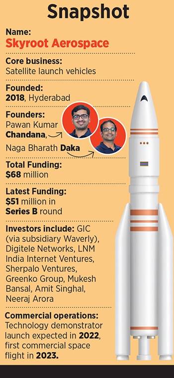 Chandana and Daka, both former Isro scientists, started Skyroot only in 2018, and they have already completed a full ground test of all the stages of Vikram I. A technology demonstrator launch is likely to happen this year itself.
