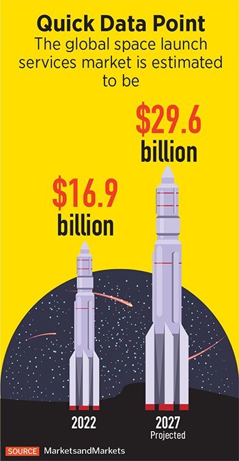 And other companies such as Pixxel, Bellatrix, Agnikul, GalaxEye and Dhruva are also attracting interest at various levels. The opportunity ahead is large. For example, the space launch services segment alone is expected to more than double from this year to about $30 billion by 2027, according to market researcher MarketsandMarkets.