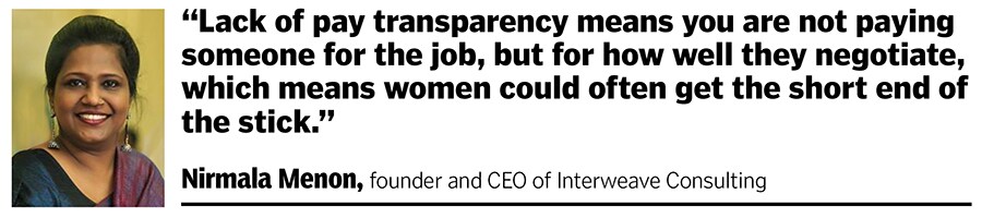 Companies get away with paying women less in such scenarios because of low pay transparency in the country, Menon explains. Since most negotiations are based on previous or current salaries drawn, there is no way of knowing whether it is as per industry standards. And if that pay has not undergone a revision over the years, it leaves women with a much lower compensation than their job profile deserves. “It is no longer about paying someone for the job they perform, but how well they negotiate, which means women often get the short end of the stick."