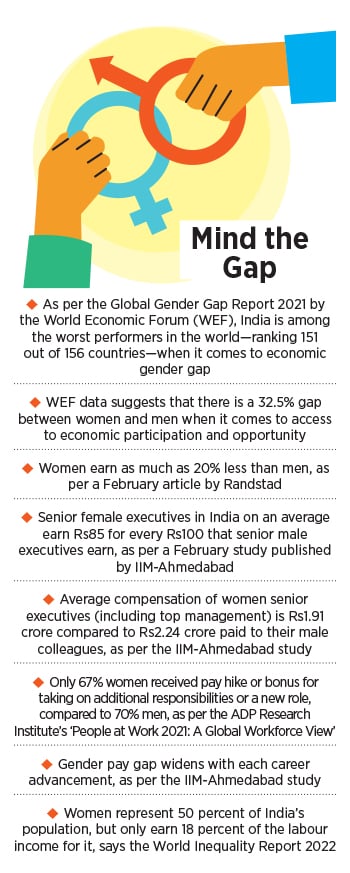 There is more data to support how socio-cultural prejudices hinder the career progress of women. Saran Balasundaram, founder and CEO of Han Digital, a talent consulting company, says that while men and women start out on an equal footing as freshers, with “women earning at par or even more than men"", the pay disparity can increase to 20 percent, and in some cases, “even 40 percent" in the mid-to-senior levels. He is quoting from the annual compensation benefit study for FY22 that his organisation conducted with a sample size of over 50,000 people in the tech industry.