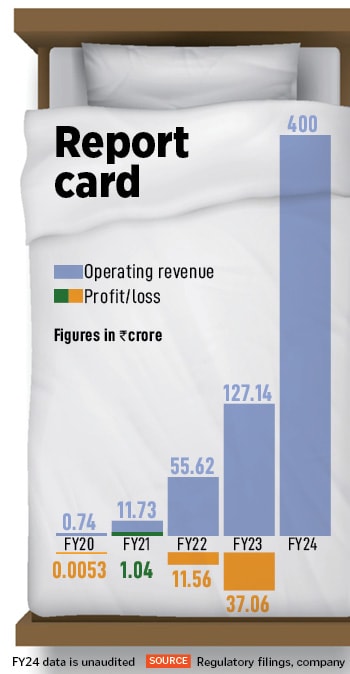 Have a look at the numbers. The operating revenue zoomed from Rs 74.05 lakh in FY20 to Rs 127.14 crore in FY23. Twelve months later, the numbers leapfrog to Rs 400 crore in FY24. “By the fourth quarter of this year, we will be profitable," claims Salot, who has made The Sleep Company transform from a mattress brand to a sleep and comfort tech solutions company that has a wide range of products such as sofa, pillows, cushions, bedding, and office chairs. “We will reach Rs 1,000 crore in two to three years," she adds.