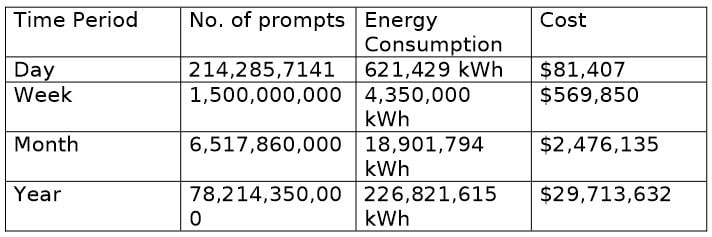 Every time you pose a question to ChatGPT, it uses approximately 0.0029 kilowatt-hours of electricity, which is almost 10X the amount of energy required for a standard Google search, which uses around 0.0003 kilowatt-hours per search, as reported by The Electric Power Research Institute (EPRI).