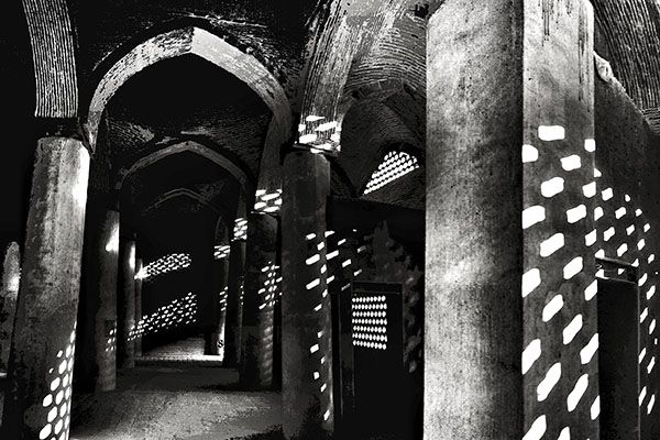All the photographs with the women in black and arches were taken in two days in Iran, in Yazd and Isfahan. Yazd is like the Jaisalmer of Iran it’s out in the desert beyond everything else. It’s the last stop. And it’s wild and hot and bleak… it was a big Zoroastrian centre until recently.