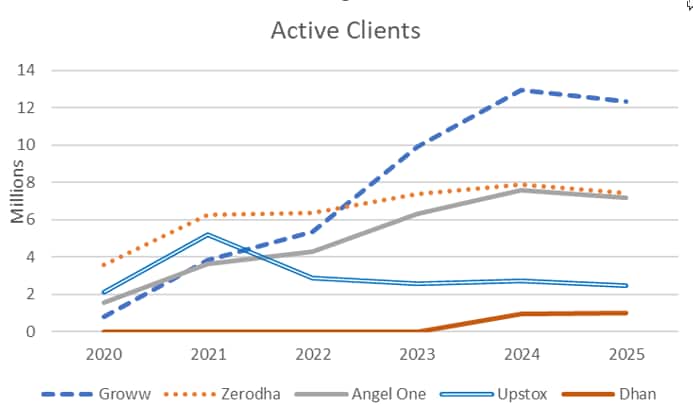 As a result, many years later, Zerodha is no longer the market leader in terms of active clients. In May 2025, according to National Stock Exchange (NSE) data, it ranked second with 7.75 million active clients, trailing Groww’s 12.8 million by a significant margin. In fact, there is a greater probability of Zerodha slipping to third place than regaining the top position — Angel One ranks third with 7.44 million, a difference of only 4%.