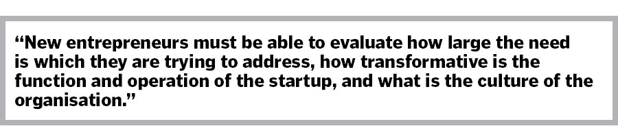 “New entrepreneurs must be able to evaluate how large the need/problem is which they are trying to address, how transformative is the function and operation of the startup, and what is the culture of the organisation," Kumar adds.