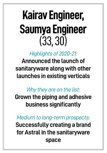 Brothers Kairav and Saumya Engineer have taken forward their father's legacy at Astral, and have diversified into segments like adhesives, construction chemicals, and water tanks