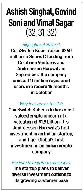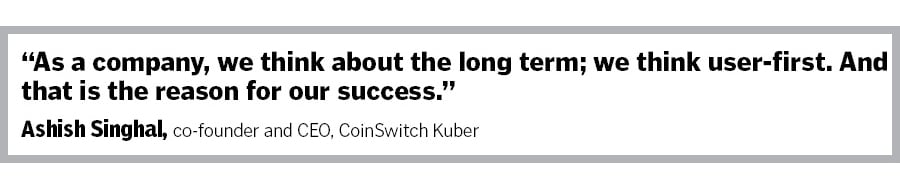 Thirty-two-year-old Ashish Singhal knew his company is on the right path just a week after launching CoinSwitch Kuber in India. The assurance came after Singhal’s mother ended up buying bitcoin on his platform, without even telling him about it. “We launched with the mission to make crypto investing as simple as ordering food online. The aim is to create an investment ecosystem that simplifies investing in crypto for retail users," says Singhal, co-founder and CEO of CoinSwitch Kuber, a crypto exchange.