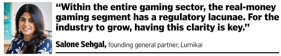 “Within the entire gaming sector, the real-money gaming segment has a regulatory lacunae. For the industry to grow, having this clarity is key," says Salone Sehgal, founding general partner at Lumikai.