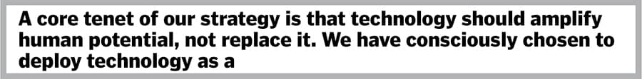A core tenet of our strategy is that technology should amplify human potential, not replace it. We have consciously chosen to deploy technology as a ‘co-pilot’ rather than a substitute for our workforce. We are committed to reskilling and equipping our workforce for emerging roles, ensuring that as the organisation progresses, our people grow and succeed with it.
