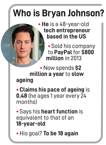From a niche obsession of the ultra-rich to a fast-growing global industry, longevity is having its moment. Bryan Johnson, an entrepreneur who is spending $2 million a year to reverse ageing, believes artificial intelligence (AI) will fundamentally change how health care is delivered. Johnson was the subject of the 2025 Netflix documentary Don’t Die: The Man Who Wants to Live Forever. He has turned his body into a testing ground through Blueprint, which began as his personal longevity experiment and is now also a company that sells health supplements, bloodtesting equipment and other products tied to his own diet and protocol. The 48-year-old biohacker—who claims to have slowed his pace of ageing to 0.48 (which means he ages one biological year for every two that pass)—talks to Forbes India about his plans to bring Blueprint’s products to the country and why he thinks Indians’ biggest longevity challenge is the air we breathe. Edited excerpts: