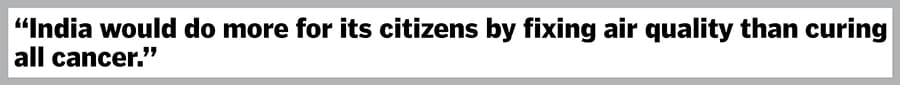 Air quality. India would do more for its citizens by fixing air quality than curing all cancer.