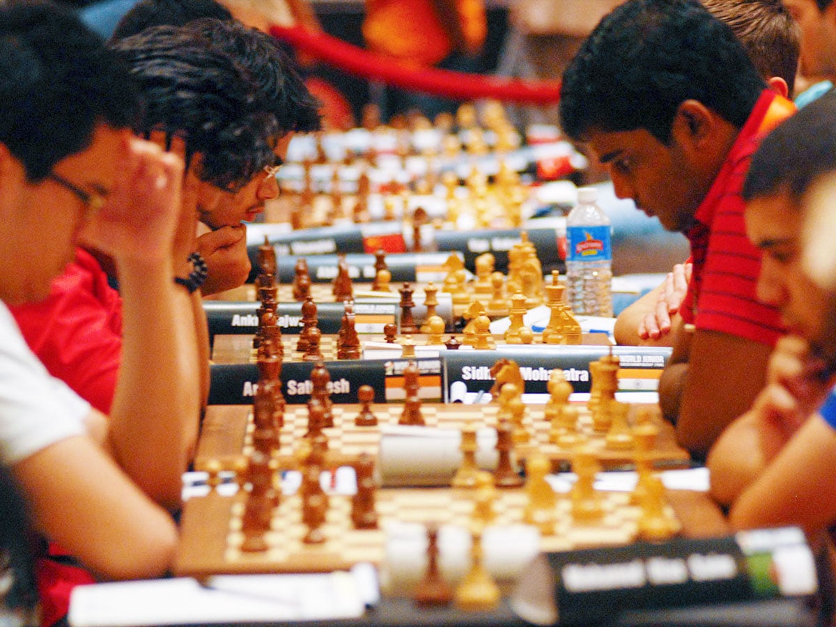[caption](File) Players take part in matches during the World Junior Chess Championship in Pune. Image: STRDEL / AFP