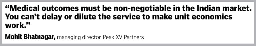 “Medical outcomes must be non-negotiable in the Indian market,” says Mohit Bhatnagar, managing director at Peak XV Partners, a large venture capital firm that used to be the Indian arm of Sequoia. “You can’t delay or dilute the service to make unit economics work.”