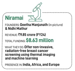 Niramai plans to expand to 35 to 40 countries, deepen its presence in its existing markets, and scale manufacturing through local partnerships. Manjunath is extending the platform’s capabilities to diagnose other conditions, including whole-body screening and fever detection.