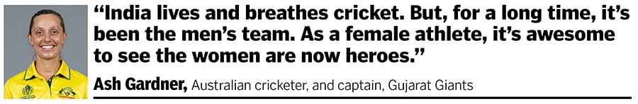The after-effects of the World Cup have not been limited to Indian cricket alone, but have spilled over into the global game, with top international cricketers like Ashleigh Gardner, Laura Wolvaardt and Sophie Devine emerging as household names alongside Deepti Sharma and Shafali Verma. Gardner, who will skipper GG in the WPL, echoed the thrill of playing in packed venues during the recent World Cup—a welcome shift from the half-empty stadiums she had experienced on earlier tours of India with the Australian national team. “We know in a country like India, people live and breathe cricket. But for a long time, it’s been the men’s team. As a female athlete, it’s awesome to see that the women are now the people’s heroes,” Gardner told Forbes India.