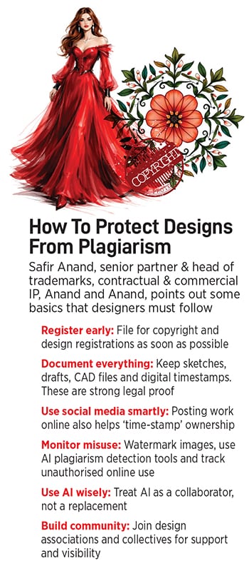 Shadangule hopes design schools emphasise courage and integrity over imitation disguised as inspiration. Dongre advises registering sketches, motifs, prints, and embroidery layouts. “For young designers, my advice is simple: document everything. Register your work, maintain dated archives and be proactive. Your creativity is your intellectual property—protect it from the beginning.”