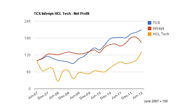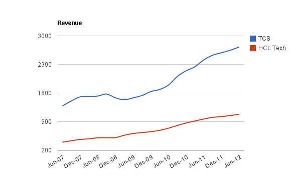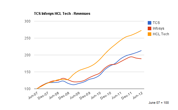Two, while Nayar loves attributing HCL’s performance to his ‘employee first’ strategy, it more likely came from the big acquisition he made in 2008 (and from making the best use of favourable currency and from aggressively pursuing certain growth segments). This growth engine has not gone out of his radar. Nayar told Financial Express that HCL Tech will focus on big acquisitions, and that it's a five year play.That will take time, will be risky, but that just might give the next thrust to HCL Tech’s growth.***